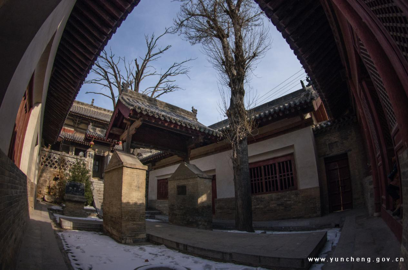 鐘鼓二樓聳峙于寺前兩側,中軸線自南往北有山門、天王殿、彌陀殿、后大殿四進院落,兩側襯以廂房配殿,規模壯觀,井然有序。