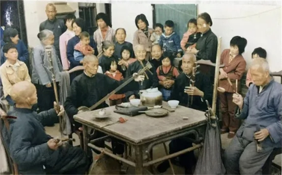 月影西斜,唱到《韓湘子歸山》的流水板,揚琴聲忽如汾河漲潮。盲藝人脖頸青筋暴起,假聲拖腔驟起。木魚急雨般追著唱詞,恍惚間仿佛看見韓湘子踏著琴音登上中條山,道袍鼓蕩如帆。滿場喝彩聲里,筆者忽然明白為何這圍桌而坐的“盲人說書”,能在晉南傳唱200多個春秋。