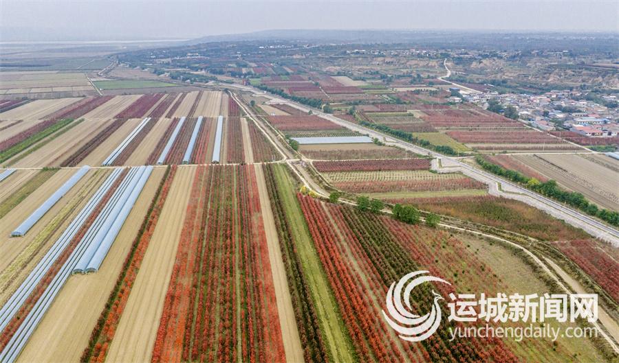 11月11日,雖已是初冬時節,但黃河一號旅游公路臨猗段沿線的秋色尚未褪盡,依然絢麗多彩,紅、黃、橙、綠交織的彩林,蜿蜒的公路,錯落分布的農田與村落相映成趣,構成了一幅靈動鮮活的鄉村初冬畫卷。